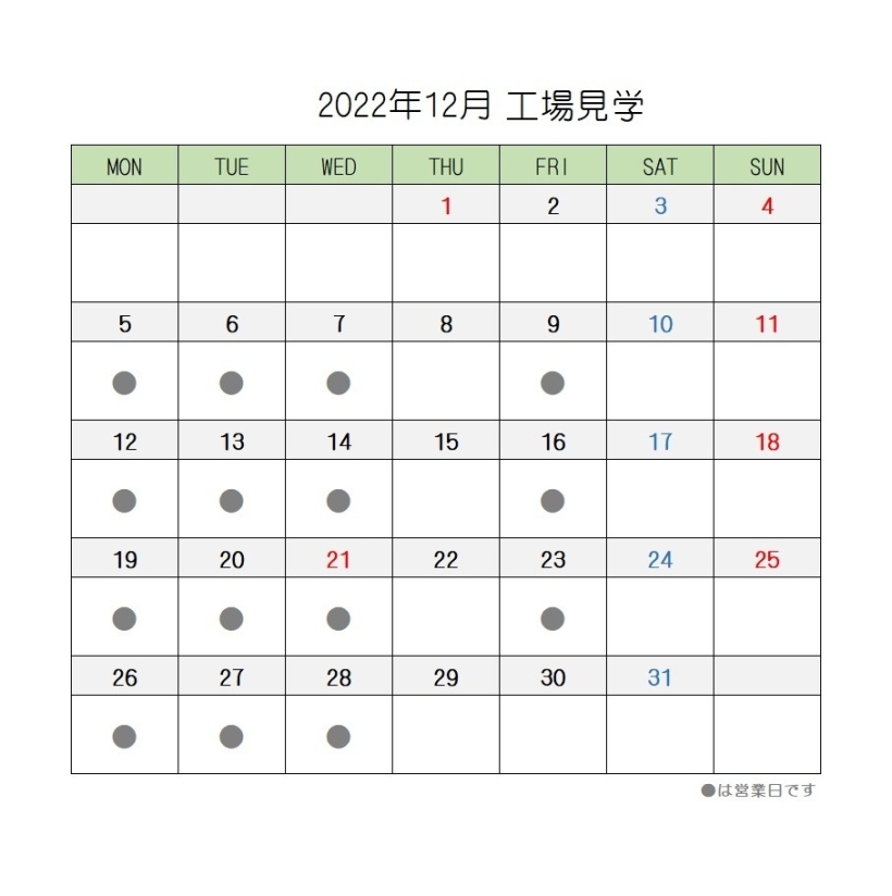 12月の営業スケジュール【直売店・茶房AOI・工場見学】