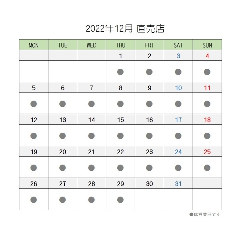 ※12/30~1/5まで休業。年始めは2023年1月6日(金)~通常営業