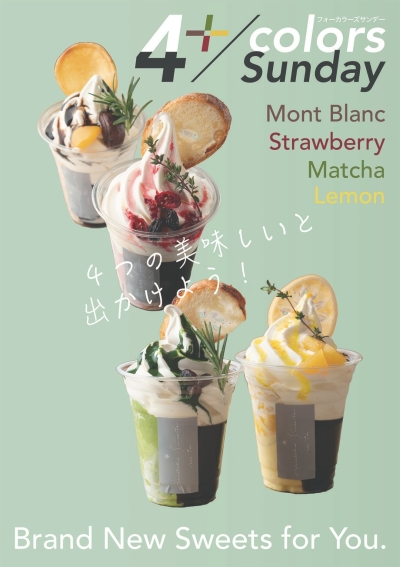 当店2階のカフェ茶房AOIでは、北海道産のソフトクリームをたっぷりと使用した「4+/colors サンデー(New)」が好評発売中です。
