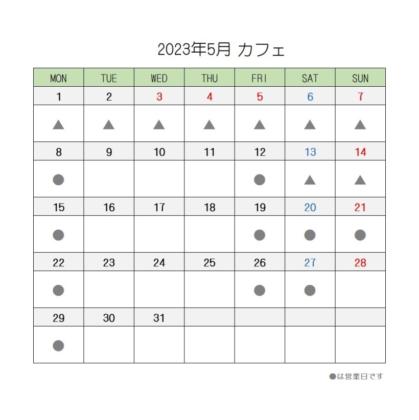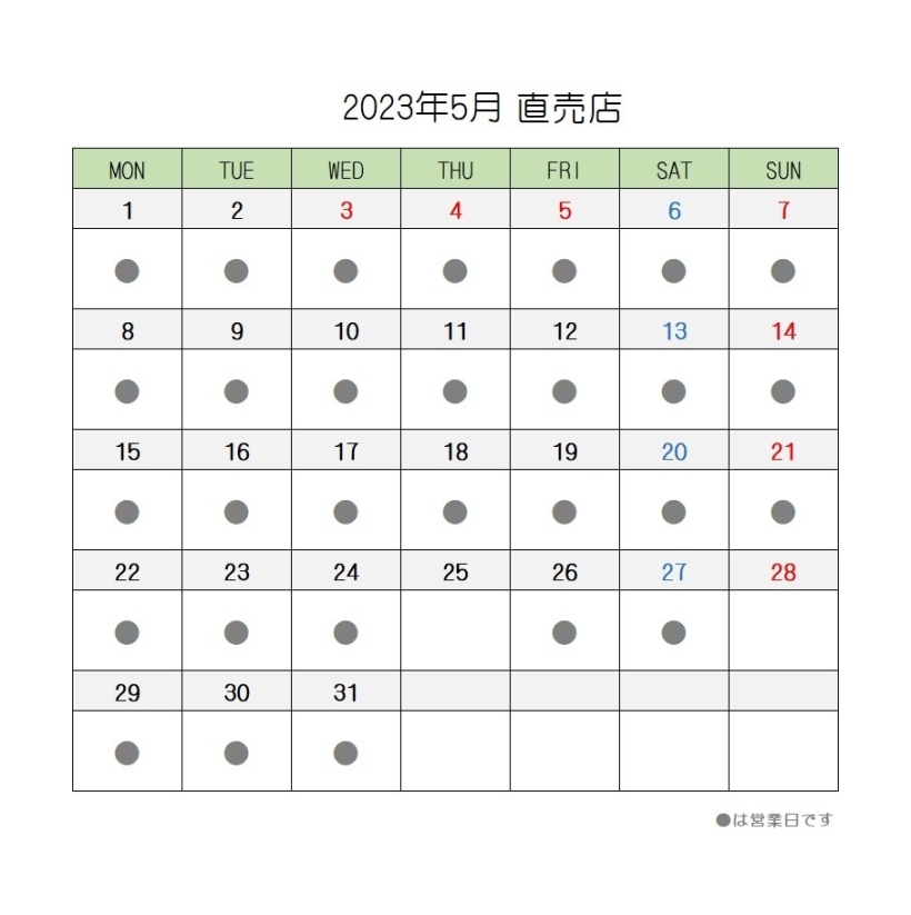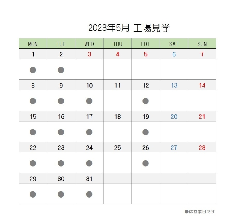 2023年5月の営業スケジュール【直売店・茶房AOI・工場見学】
