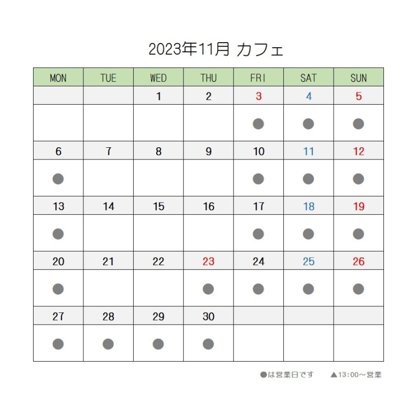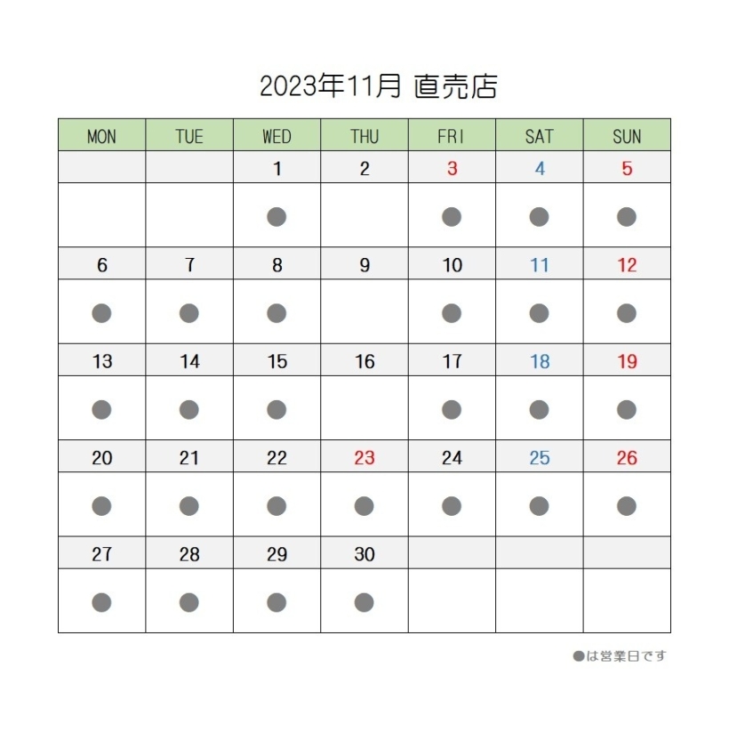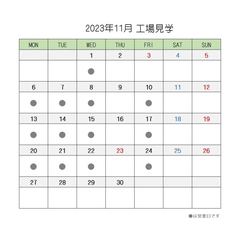 2023年11月の営業スケジュール【直売店・茶房AOI・工場見学】