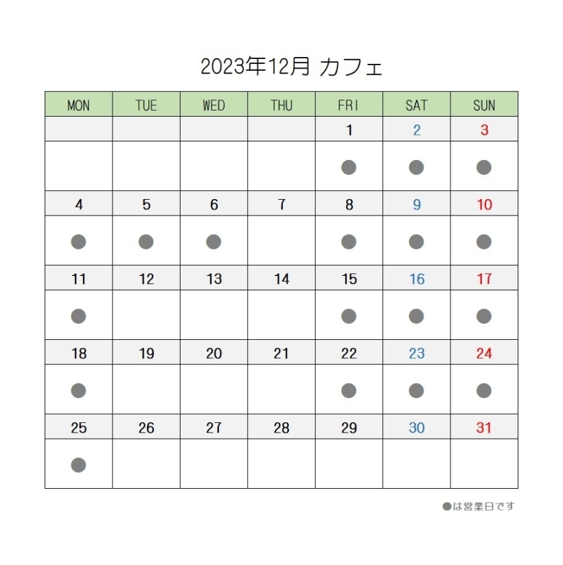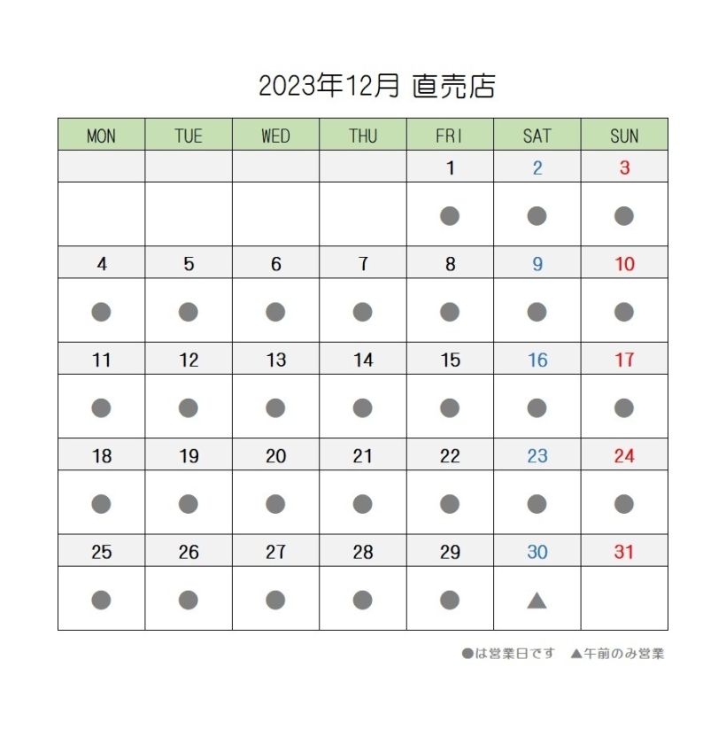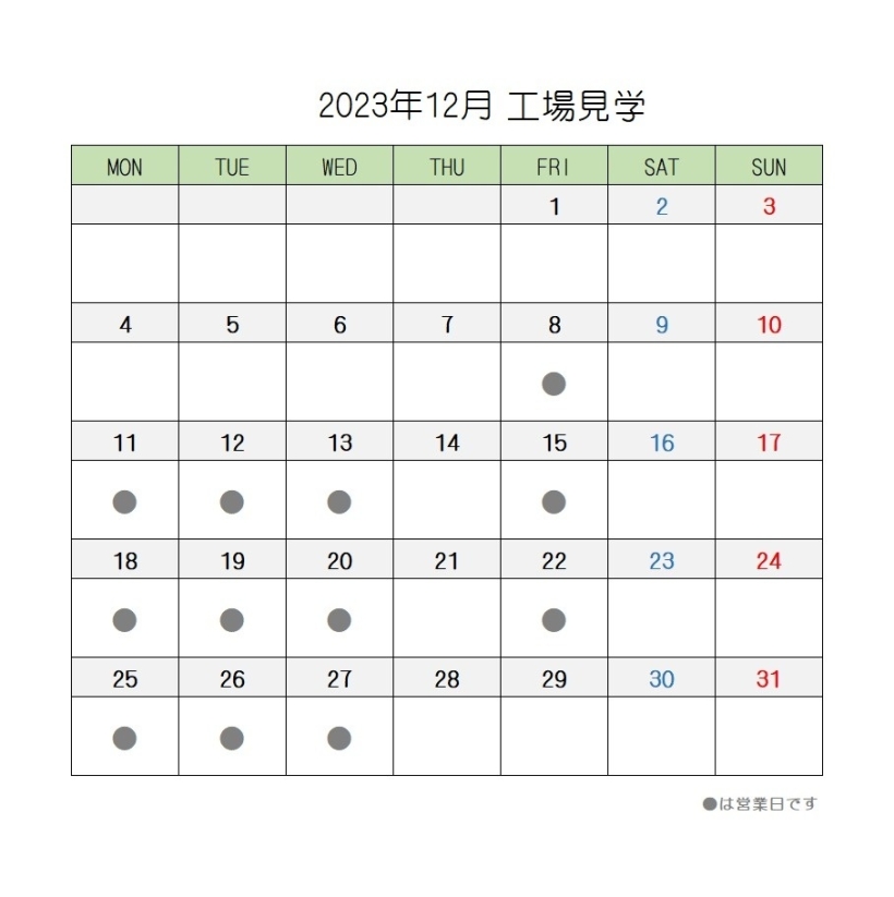 2023年12月の営業スケジュール【直売店・茶房AOI・工場見学】