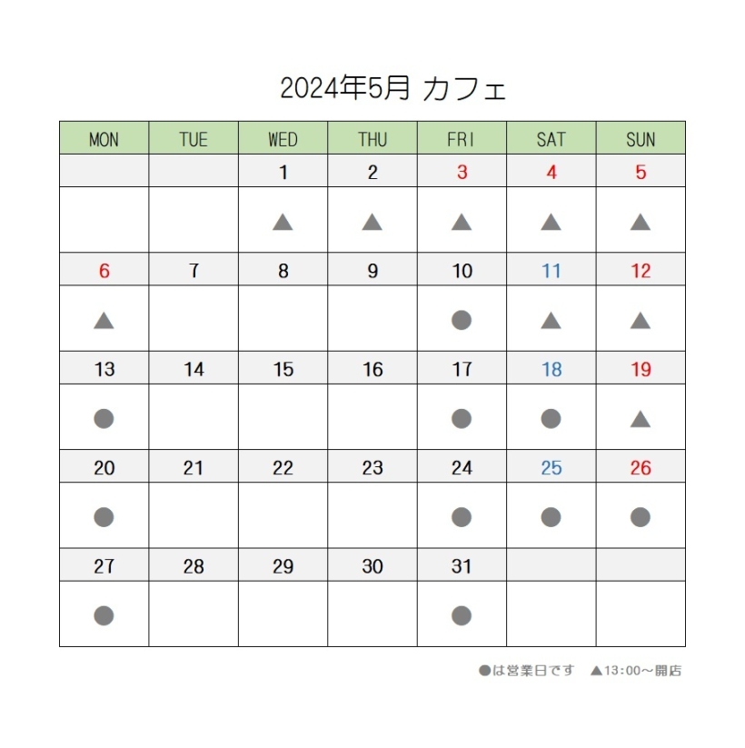 ※▲13:00~営業となります。