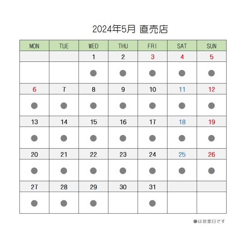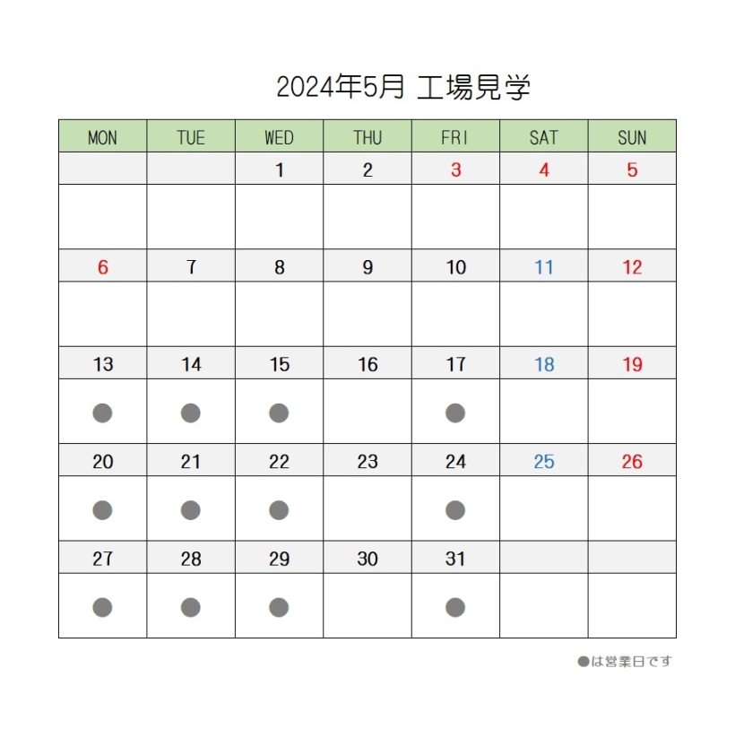 2024年5月の営業スケジュール【直売店・茶房AOI・工場見学】