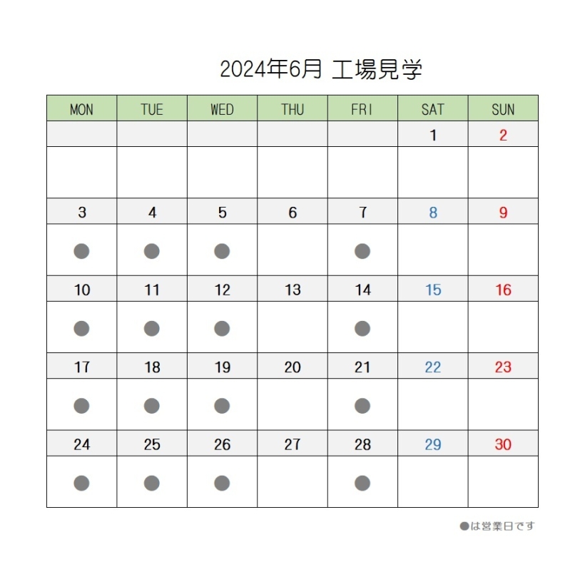 2024年6月の営業スケジュール【直売店・茶房AOI・工場見学】