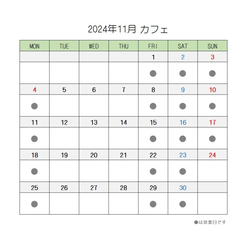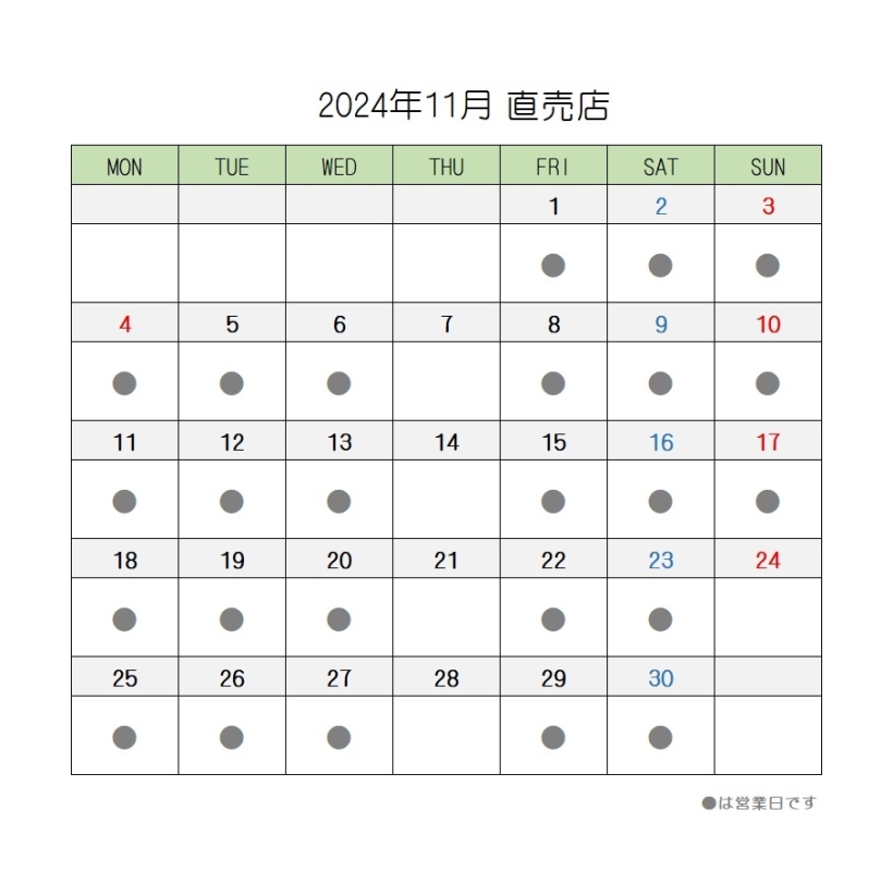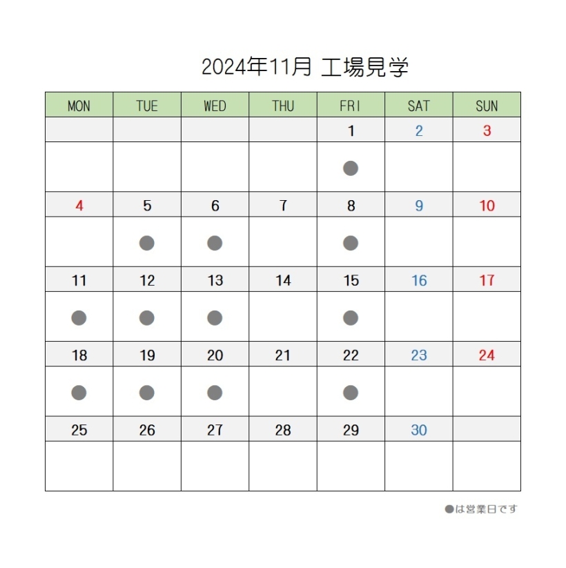 2024年11月の営業スケジュール【直売店・茶房AOI・工場見学】