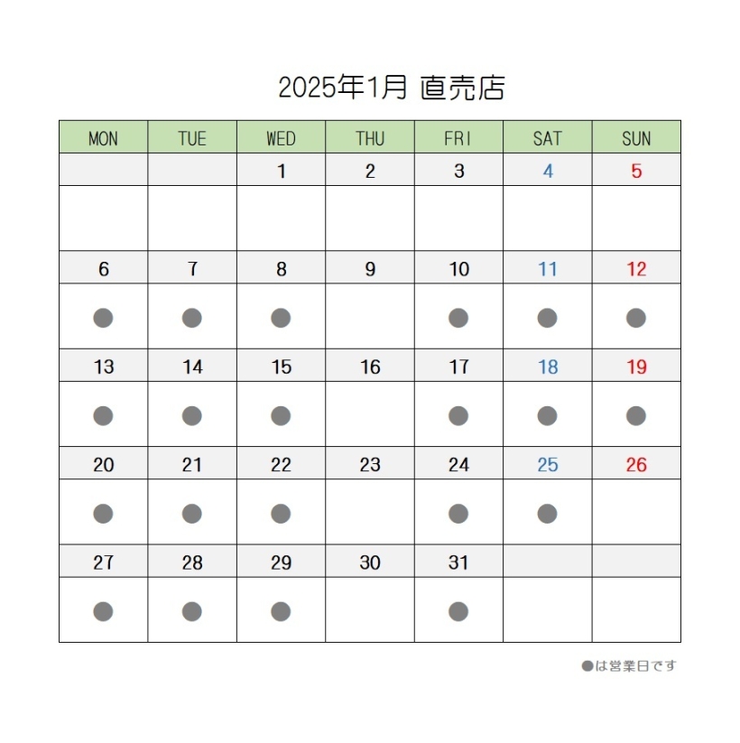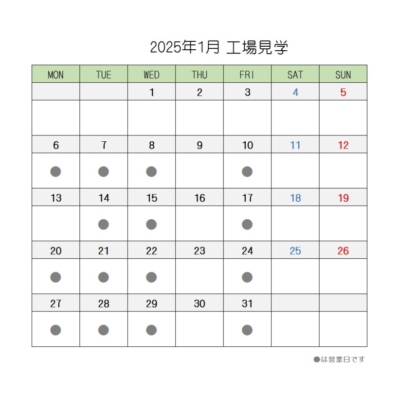 2025年1月の営業スケジュール【直売店・茶房AOI・工場見学】