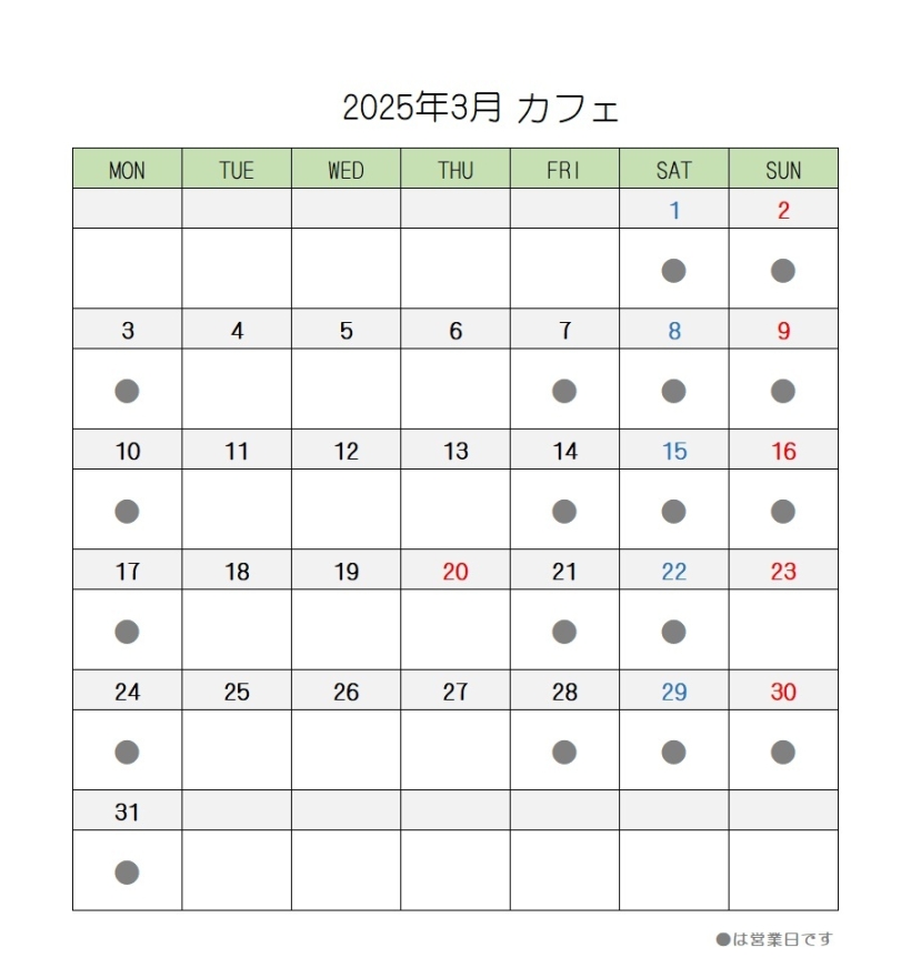 定休日 火・水・木曜日、第4日曜日3/23