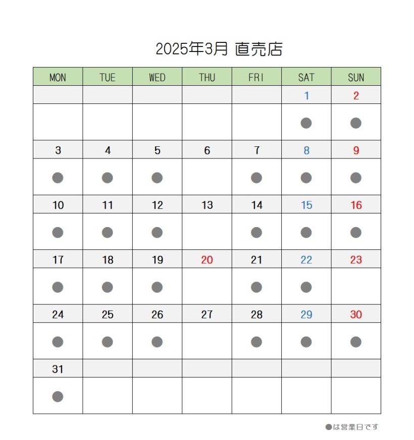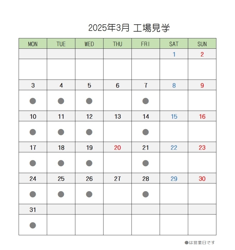2025年3月の営業スケジュール【直売店・茶房AOI・工場見学】