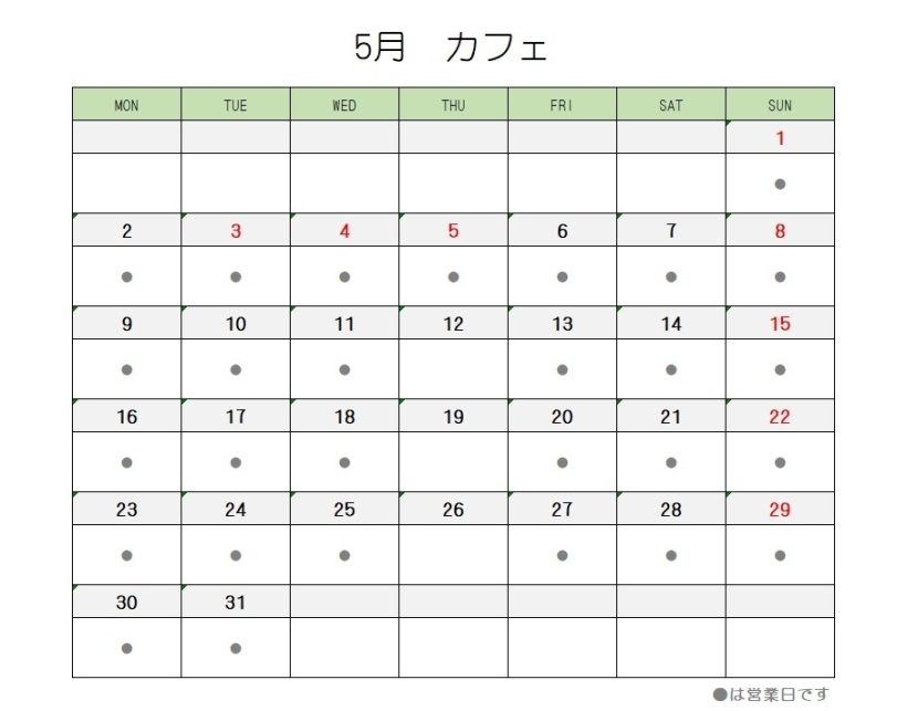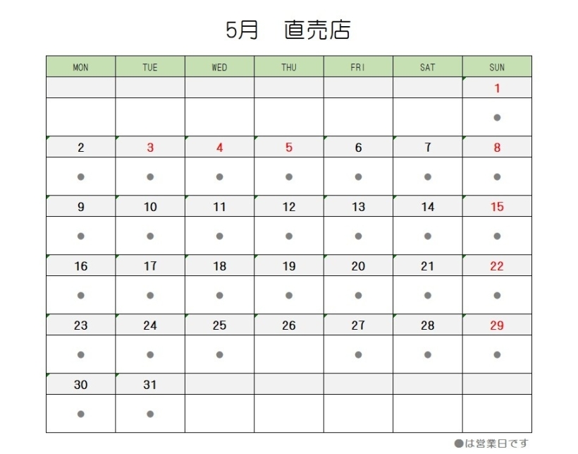 ※5/5,22は特別営業致します