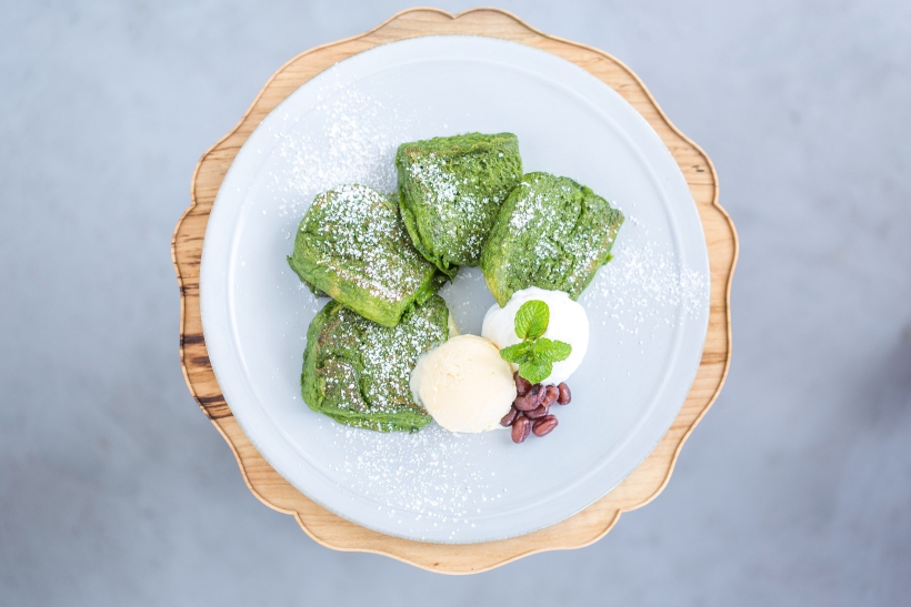 茶道用抹茶をたっぷりと使用した卵液にじっくり8時間漬け込んだパン生地を、外はふわふわ、中はトロリと焼き上げました。抹茶味濃厚の贅沢な仕上がりです。
